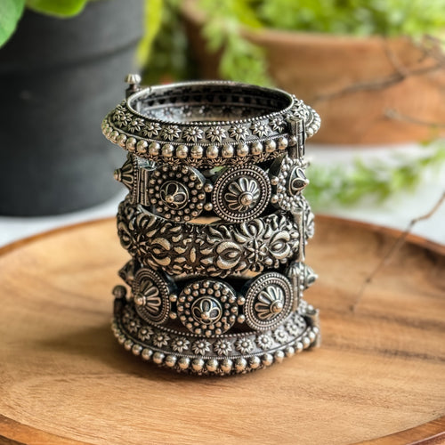 KHUSHI SILVER LOOKALIKE STONE BANGLE