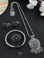 Complete your collection with our stunning oxidised jewelry set combo, a perfect blend of elegance and tradition. Each set features intricately designed pieces, including a necklace, earrings, bangles, and rings, crafted from high-quality materials with a rich oxidised finish. Designed for women who appreciate unique styles. This combo is ideal for weddings, festivals, or casual outings. The versatile designs pair effortlessly with ethnic and fusion wear, adding a bold statement to any outfit.
