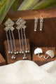Elevate your ethnic charm with this exquisite Oxidised Silver Earring Trio Set, crafted to suit every mood and moment. This handcrafted collection features three distinct earring designs, each showcasing timeless artistry and elegance. The set includes long peacock danglers with intricate lattice work and silver ball drops, perfect for festive and traditional wear. The geometric triangle studs add a bold, modern flair ideal for Indo-western styling, while the sun-inspired petal half hoops bring a soft, radiant charm to your everyday outfits. Made from premium oxidised silver, each pair offers a rustic vintage finish that’s both durable and skin-friendly.