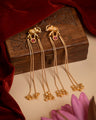 These elegant Kashmiri-style handmade earrings reflect the rich heritage and artistic beauty of Kashmir’s traditional craftsmanship. Designed with an antique gold finish and accented with soothing turquoise-toned stones, the earrings feature delicate pearl detailing and long cascading chains adorned with ghungroo-style elements. The graceful movement and intricate design create a regal yet soulful appeal.