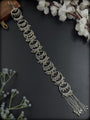 Elevate your ethnic charm with this statement Oxidised Chootiphool – a perfect blend of tradition and boho grace. Designed with intricate detailing and layered chains, this accessory beautifully adorns your wrist and hand like a cascading jhoomar. Each motif is handcrafted in antique silver and gold tones, giving it a regal tribal finish. Whether paired with sarees, lehengas, or Indo-fusion outfits, this piece adds a bold touch to every festive look.