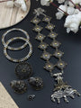 Complete your collection with our stunning oxidised jewelry set combo, a perfect blend of elegance and tradition. Each set features intricately designed pieces, including a necklace, earrings, bangles, and rings, crafted from high-quality materials with a rich oxidised finish. Designed for women who appreciate unique styles. This combo is ideal for weddings, festivals, or casual outings. The versatile designs pair effortlessly with ethnic and fusion wear, adding a bold statement to any outfit.
