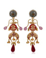 These exquisite handmade earrings showcase traditional Indian craftsmanship with an elegant royal touch. Designed with a rich gold-tone finish and deep red stone detailing, the earrings feature intricate handwork, layered motifs, and delicate dangling elements that create graceful movement. The bold design makes them a perfect statement accessory for weddings, festivals, cultural events, and ethnic celebrations. Lightweight yet eye-catching, these earrings pair beautifully with sarees, lehengas, and anarkali outfits.