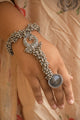 Radhika Oxidised Silver Ghungroo Finger Ring Bracelet Kada