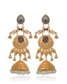 These exquisite handmade earrings showcase traditional Indian craftsmanship with an elegant royal touch. Designed with a rich gold-tone finish and deep red stone detailing, the earrings feature intricate handwork, layered motifs, and delicate dangling elements that create graceful movement. The bold design makes them a perfect statement accessory for weddings, festivals, cultural events, and ethnic celebrations. Lightweight yet eye-catching, these earrings pair beautifully with sarees, lehengas, and anarkali outfits.