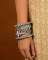Dive into elegance with our unique Kada. Each piece radiates beauty and tradition, handcrafted with silver oxidized finishes. Complete your festive look with these stunning accessories!