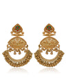 These exquisite handmade earrings showcase traditional Indian craftsmanship with an elegant royal touch. Designed with a rich gold-tone finish and deep red stone detailing, the earrings feature intricate handwork, layered motifs, and delicate dangling elements that create graceful movement. The bold design makes them a perfect statement accessory for weddings, festivals, cultural events, and ethnic celebrations. Lightweight yet eye-catching, these earrings pair beautifully with sarees, lehengas, and anarkali outfits.
