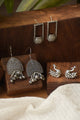 Elevate your ethnic charm with this exquisite Oxidised Silver Earring Trio Set, crafted to suit every mood and moment. This handcrafted collection features three distinct earring designs, each showcasing timeless artistry and elegance. The set includes long peacock danglers with intricate lattice work and silver ball drops, perfect for festive and traditional wear. The geometric triangle studs add a bold, modern flair ideal for Indo-western styling, while the sun-inspired petal half hoops bring a soft, radiant charm to your everyday outfits. Made from premium oxidised silver, each pair offers a rustic vintage finish that’s both durable and skin-friendly.